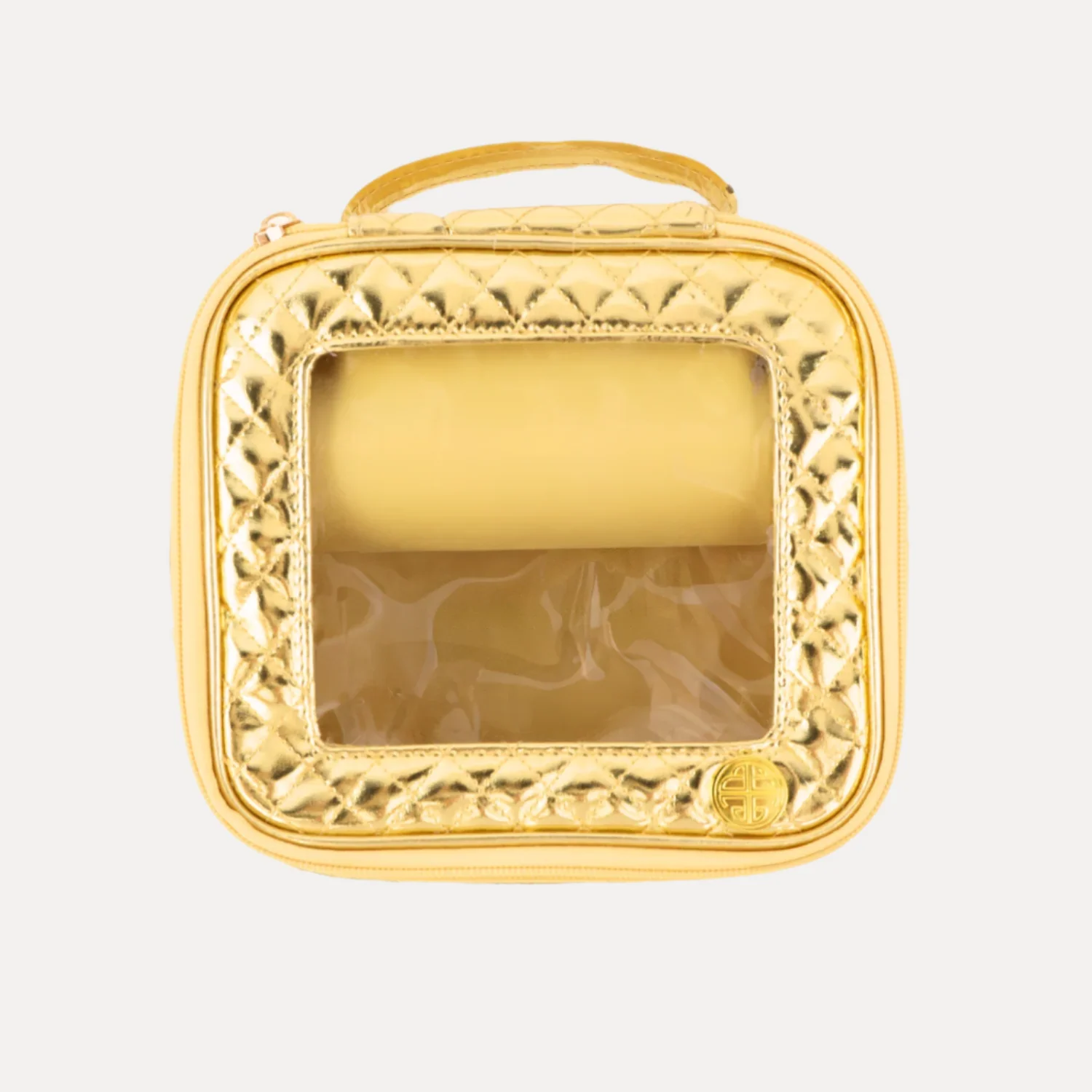 Ready, set, go in total style with your All Weather BangleĀ® Jewelry Travel Case. Classic quilted vegan leather is lined in our iconic BuDhaGirl gold satin. A bangle carrier roll is removable so you may easily pack your bangles and safely secure them with its elastic strap. Crafted in India exclusively for BuDhaGirl. BON VOYAGE! BTW...perfect for storing your bangles at home too!!!